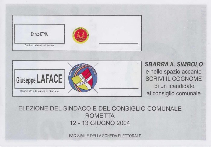 ELEZIONI AMMINISTRATIVE 12 - 13 GIUGNO 2004 |